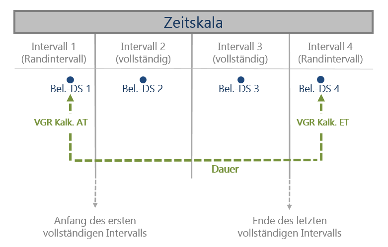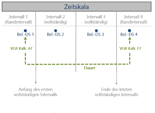 - Im nächsten Schritt werden die Belastungsdatensätze von der Terminrechnung auf die folgenden Zeitpunkte verdichtet: