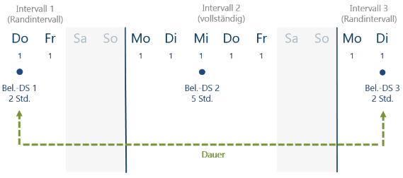 - Im zweiten Schritt verdichtet die Terminrechnung die verteilten Stunden auf einen Belastungs-Datensatz pro Intervall.