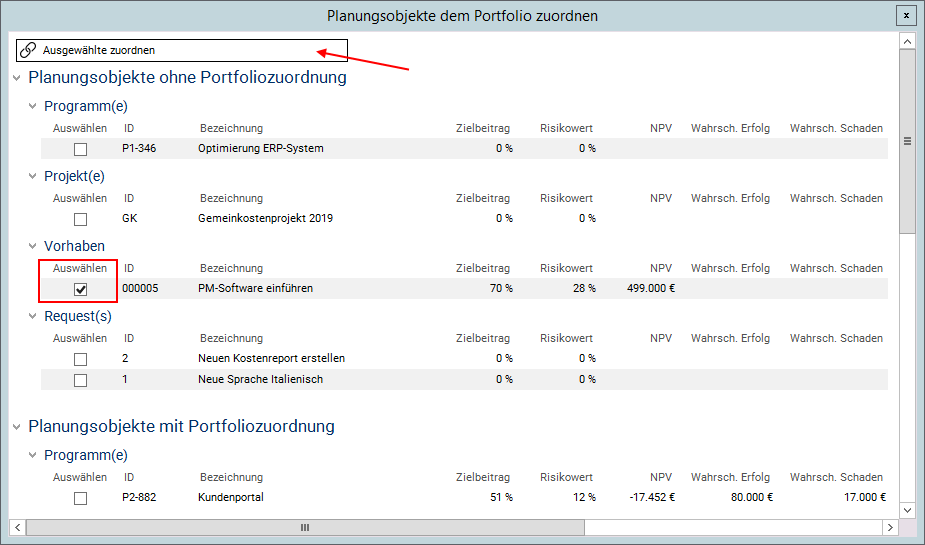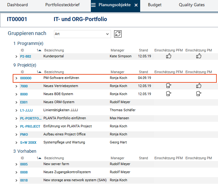 - Im Modul Planungsobjekte des IT00001 IT- und ORG-Portfolios ist ersichtlich, dass