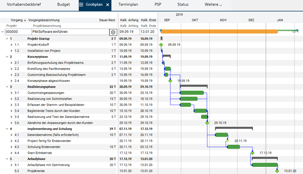 - Der Terminplan des Projekts öffnet sich.