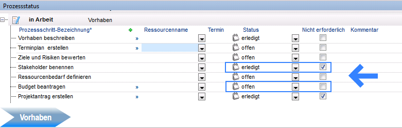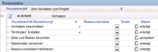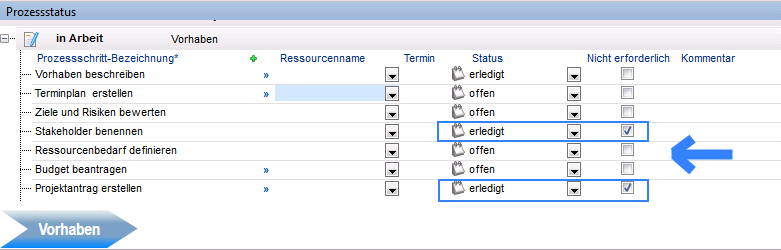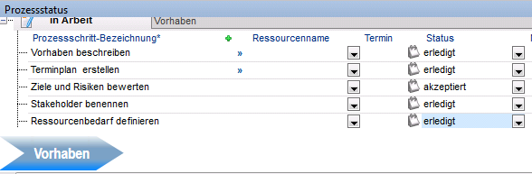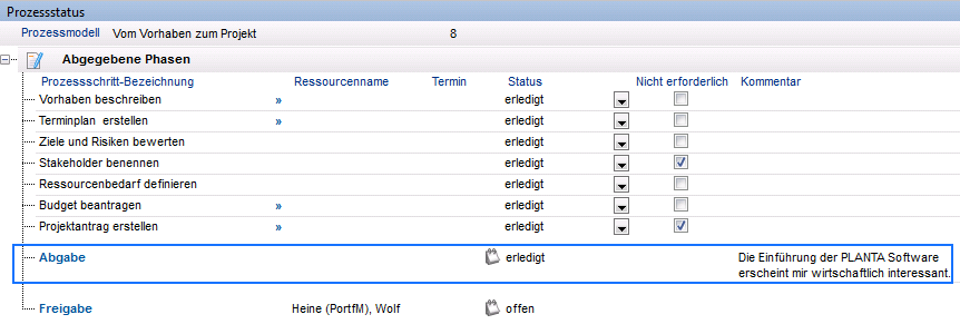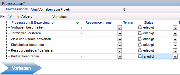 - Die Phase Vorhaben wird in den Bereich Erledigte Phasen verschoben.
