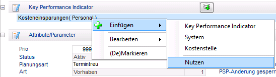 Bewertungskriterium einfügen auf der Gruppen-Ebene oder durch die Einfüge-Funktionen fügt der Projektmanager eine leere Zeile ein.