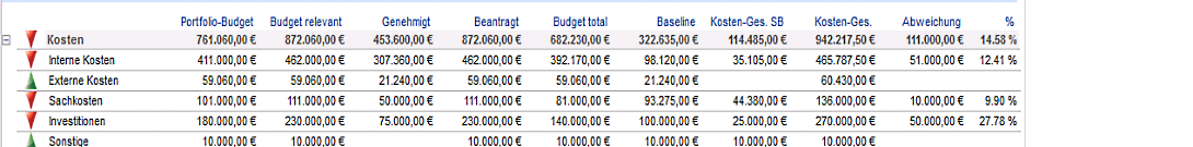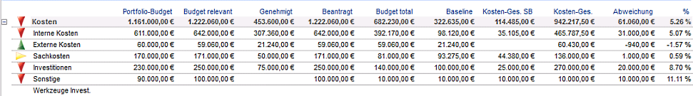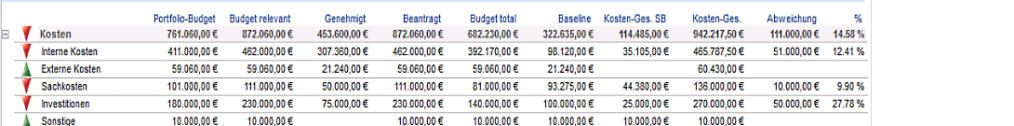 - Das Portfoliobudget ist nun kleiner als das Budget relevant, bedeutet, dass das Portfolio-Budget überschritten wurde.