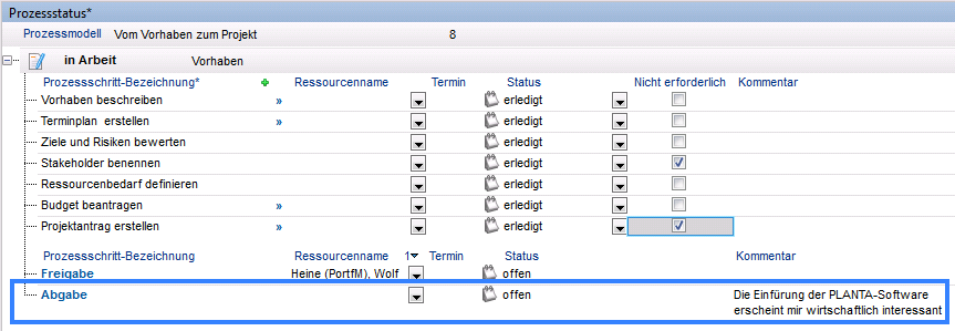 - PLANTA portfolio bietet die Möglichkeit, Ideen, Vorhaben und Projekte prozessorientiert zu planen. Hierzu stellt PLANTA mehrere Prozessmodellvorlagen zur Verfügung.