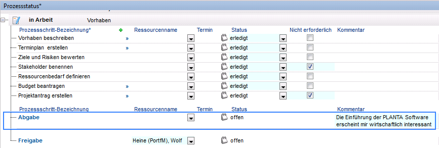 - Mit der Freigabe des Projektantrags hat Wolf Heine alle Prozessschritte erledigt.