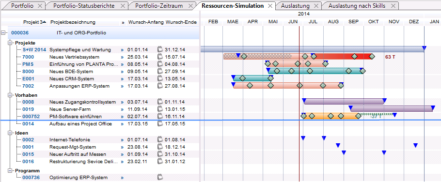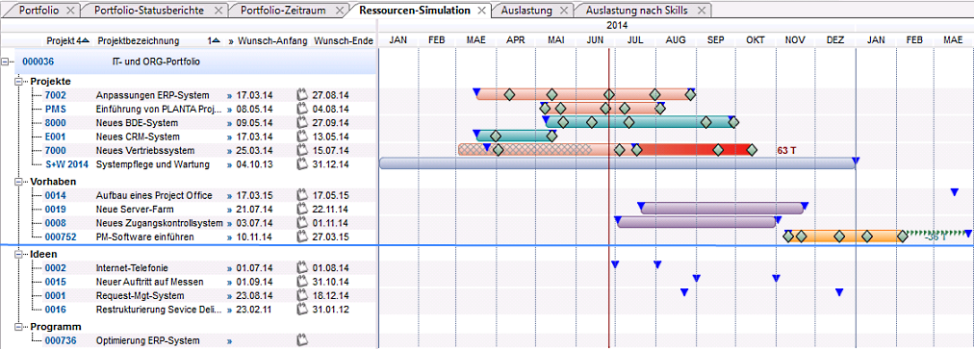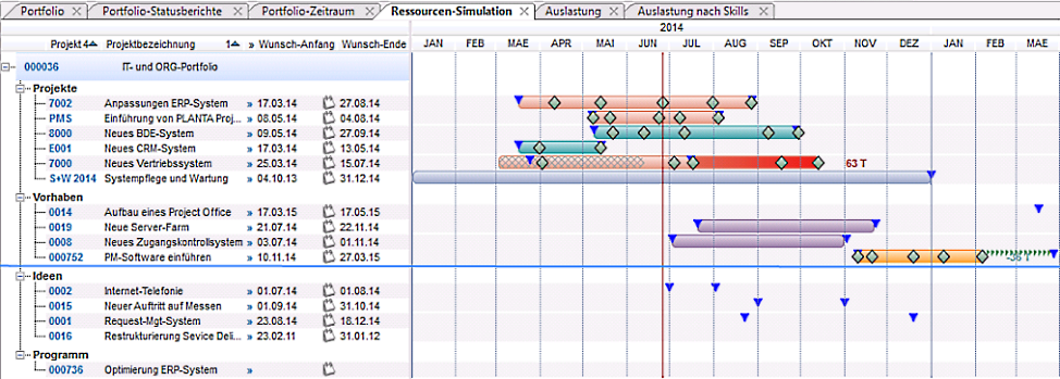 - Grafische Darstellung der Termine aller Portfolio-Planungsobjekte