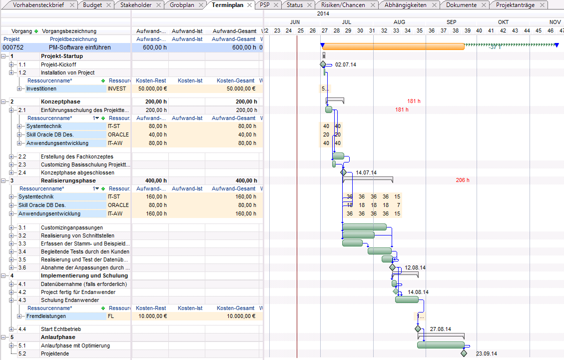 - Das Vorhaben 000752 PM-Software einführen