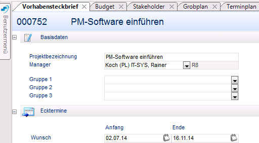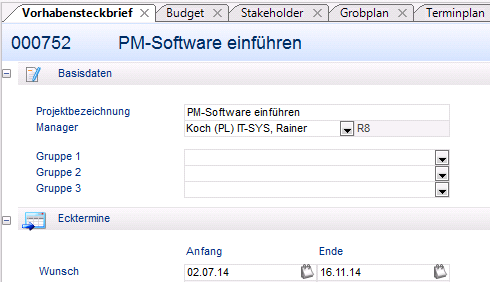 - Projektmanager Rainer Koch soll die PM-Software in seinem Unternehmen einführen. Hierfür wird ihm vom Multiprojektmanager Dieter Hart ein Vorhaben angelegt.