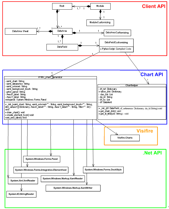 | PPMS_chart_generator(xaml_chart: String, xaml_colorset="": String, xaml_background_brush="": String, dict_values={}: Dictionary, AxesX _label="": String, AxesY _label="":String, Title="": int) | xaml_chart, String XAML-Code used as basic Chart-Template xaml_dataseries, String XAML-Code that detemines the Chart-type (e.g. bars, pie) xaml_colorset, String XAML-Code used for formating of data-series xaml_background_brush, String XAML-Code used for formating of chart background dict_values, Dictionary Contains the prepared data used for chart generation QAxesX_label, String Caption of the X-Axis QAxesY_label, String Caption of the Y-Axis |