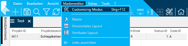 - Den Customizing-Modus über Maskeneditor Customizing-Modus aktivieren.