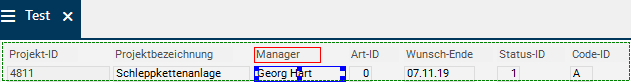 • Wird das Datenfeld und das dazugehörige Überschriftsfeld markiert, wird das Überschriftsfeld hellblau und das Datenfeld dunkelblau umrandet, unabhängig davon, was zuletzt markiert wurde.