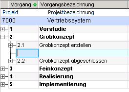 - Ergebnis: Aufgrund der Positionierung an der obersten Stelle wird der neue Vorgang zu Vorgang 1.