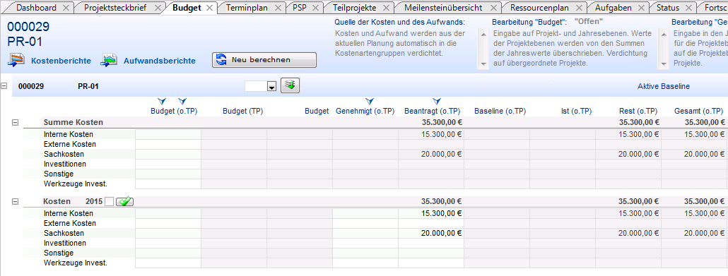 - Mit dem Fortschreiten des Projektes können im Rahmen der Projektsteuerung weitere Planungsstände in Statusberichten fixiert werden. Diese können dann mit dem aktuellen Planungsstand verglichen werden.