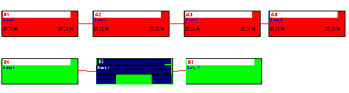 - Vorgang (B2) hat innerhalb seines Projekts den Rang 2, sein projektübergreifender Vorgänger (A3) innerhalb dessen Projekts den Rang 3. Damit erhält Vorgang (B2) im Gesamt-Netzplan den Rang 4. Sein Nachfolger den Rang 5.