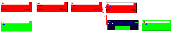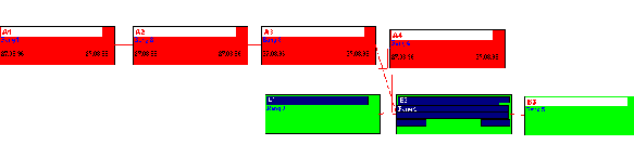 - Bei AE- und EE-Beziehungen von Strukturvorgängen ergeben sich deren VG frühester Anfang aber erst nach der Berechnung des Unterprojekts, weshalb diese Termine nicht zuvor nach unten übergeben werden können. Es handelt sich dabei also um ein Huhn-Ei-Problem, was einige andere Projektmanagementsysteme veranlasst, diese Beziehungen erst gar nicht zuzulassen. In PLANTA project sind AE- und EE-Beziehungen von Strukturvorgängen möglich und sie werden wie folgt berücksichtigt: