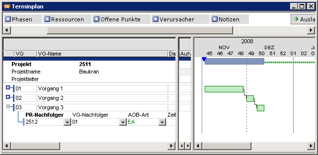 - Von Vorgang 03 in Projekt 2511 gibt es eine projektübergreifende AOB zu Vorgang 01 in Projekt 2512.