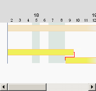- Für den Schiffstransport einer Turbine werden 7 Wochentage veranschlagt. Daher wird in der Anordnungsbeziehung ein Zeitabstand von 7 Tagen eingegeben. Ohne Verwendung eines AOB-Kalenders beginnt der Nachfolger jedoch nicht 7 Kalendertage, sondern 7 Arbeitstage später. Der Vorgang wird also verspätet eingeplant: