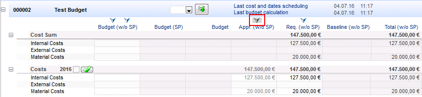 - On the following screenshots, some columns in the Budget module are hidden or their sequence has been changed for reasons of clarity of the screenshots, so that their actual display may deviate from that on the screenshots.