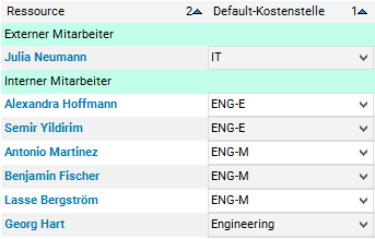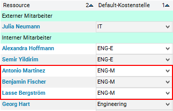 • Since there are several records with the same default cost center, the data should additionally be sorted by resource in ascending order.