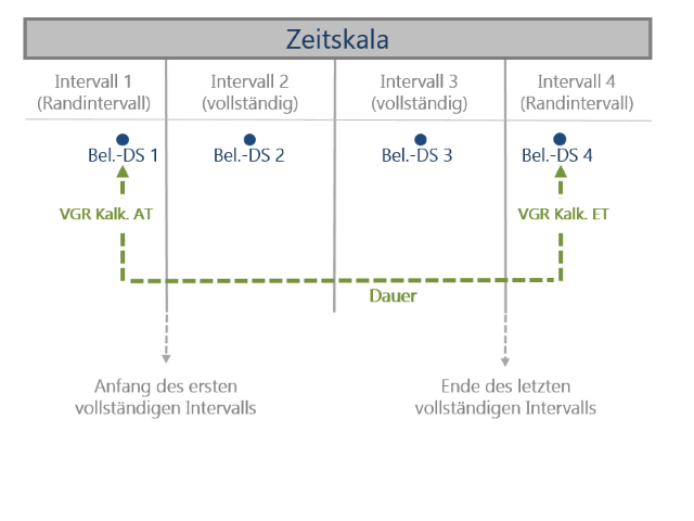 - for complete intervals to the middle of the respective interval
