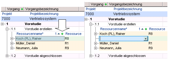 - When you open the Schedule module, no record is focused. In the pull-down menu, you only see the Task entry. This means: The highest insertable data area is Task. If you select the Task entry, a new task record is inserted directly below the project form.