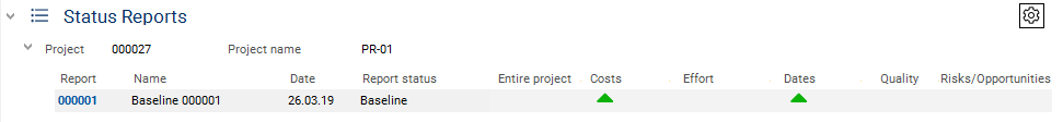 - The thumb symbols inform about the project manager's personal evaluation regarding the project status.