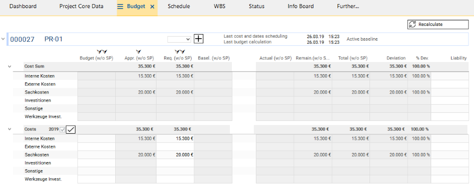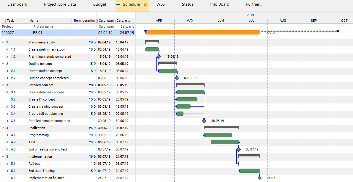 - During the project progress, further planning states can be frozen in status reports. For project controlling, they can then be compared to the current planning status.