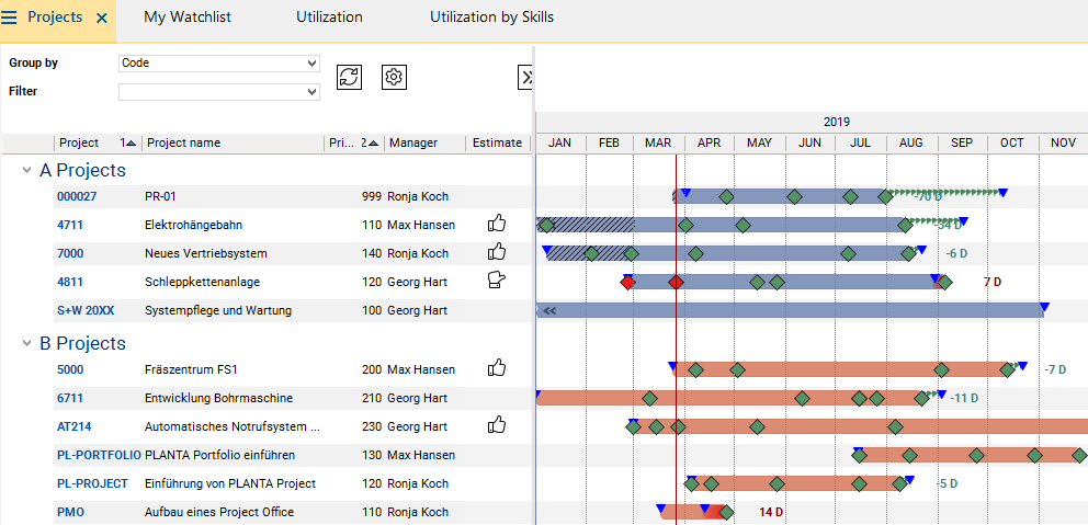 - As every morning, the multi-project manager (Georg Hart) wants to get an overview of his projects and the adherence to the project end dates.