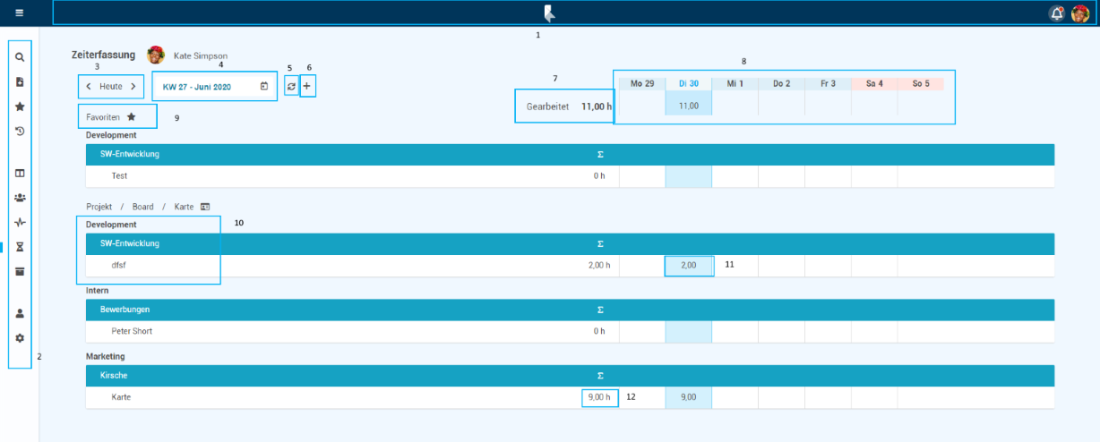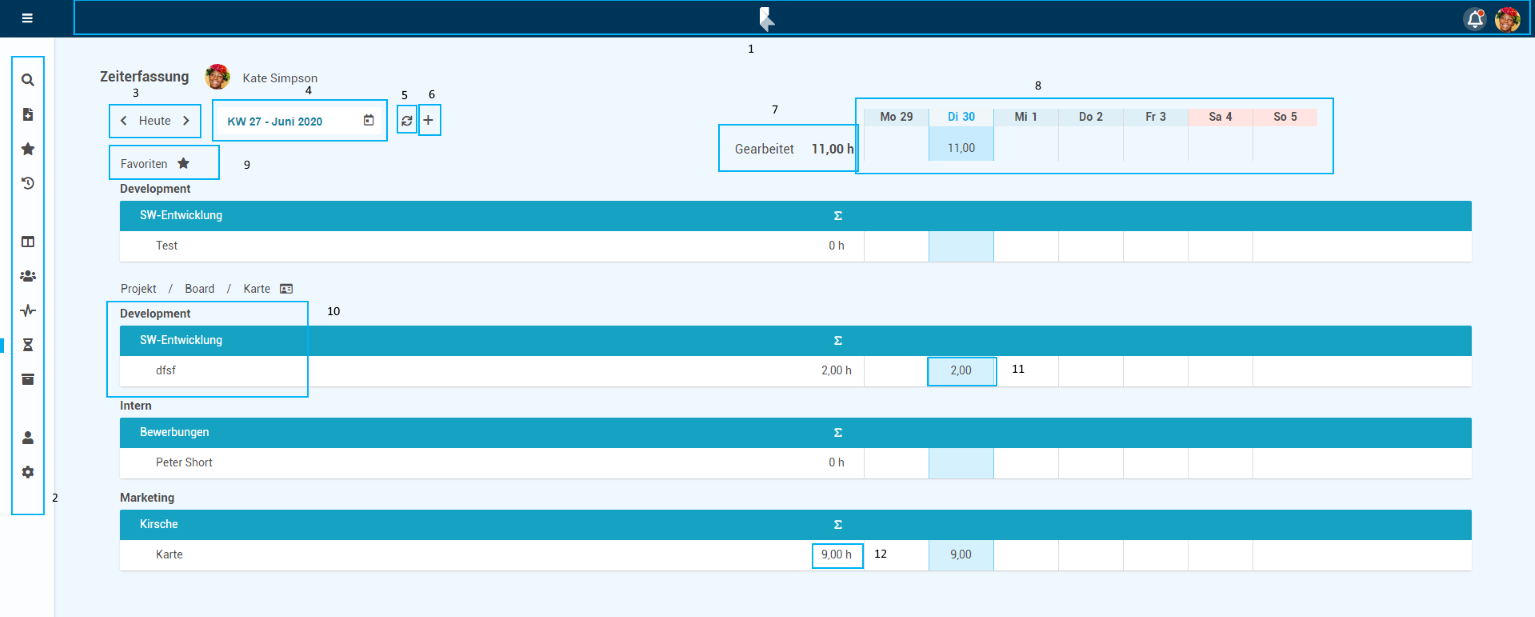 • Zuletzt gebucht auf: Karten, auf denen kürzlich bereits Stunden erfasst wurden