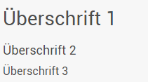 | Überschriften | # Überschrift 1## Überschrift 2### Überschrift 3 |