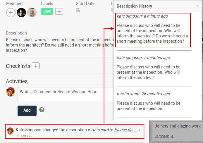 - Activities on the card with link (except for labels) are also transferred to the source card.