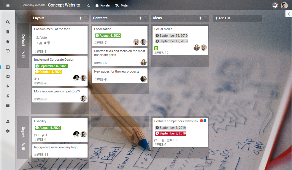 - Thanks to the flexible possibilites, lists and swimlanes can be used to illustrate the most various workflows to keep track of cards.