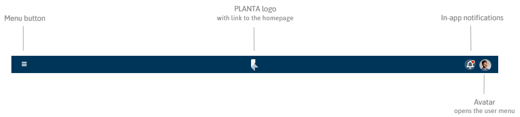 - Avatar: By clicking on the avatar, the User Menu can be opened. The avatar can be edited in the User Settings.