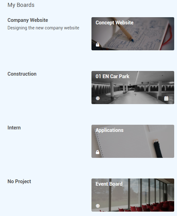 - By default, the boards are sorted by their creation date, i.e. the newest boards are displayed at the top.
