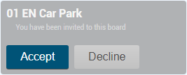 • When a user is invited to a board, a board card with the notification You have been invited to this board. is shown, which can be confirmed with Accept/Decline.