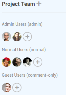 • The letters on the avatars symbolize the board permissions of the members (A for members with “admin” permission, C for users who can only write comments).