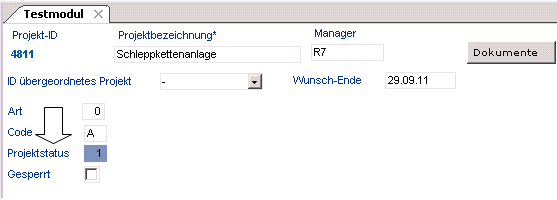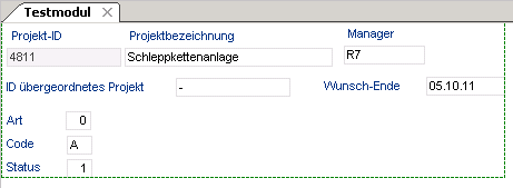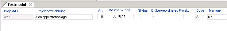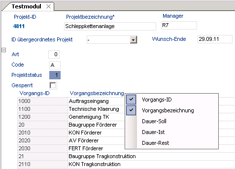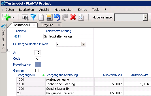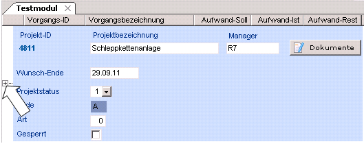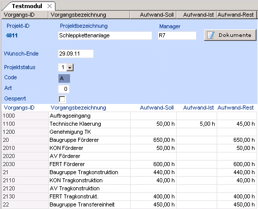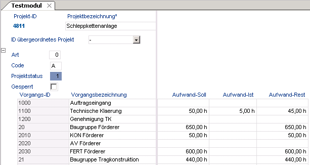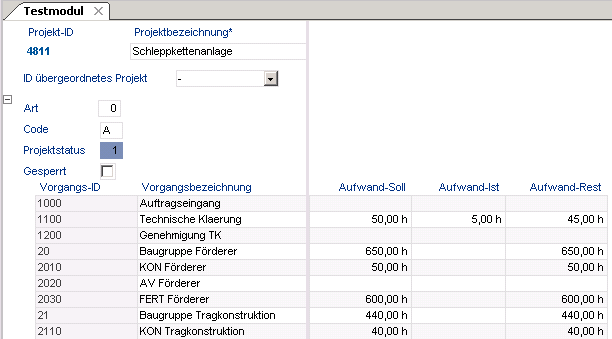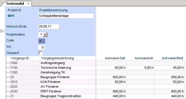 - Im Modul Testmodul sollen Vorgangs-Aufwands-Datenfelder im Fenster 2 angezeigt werden