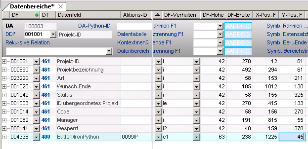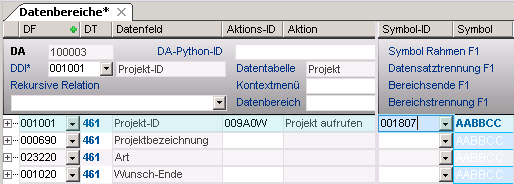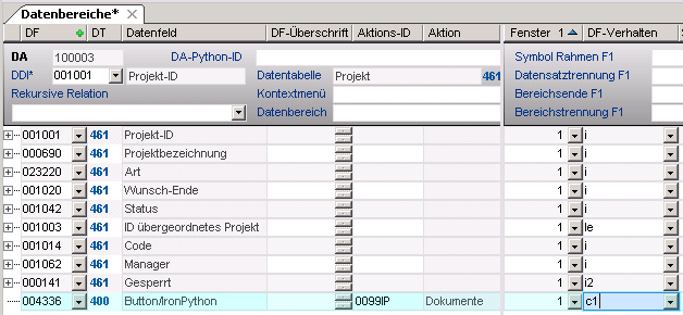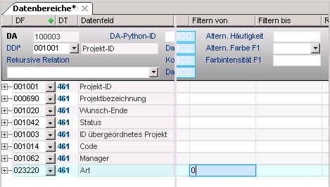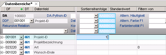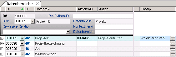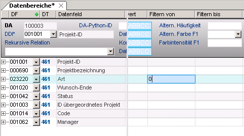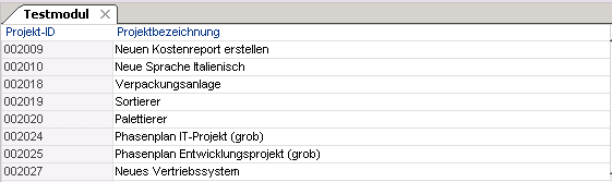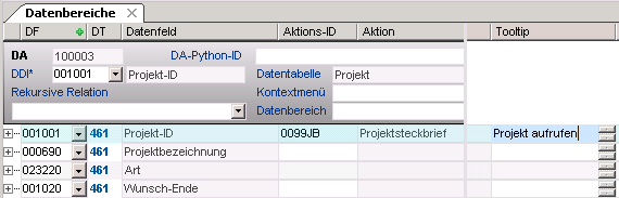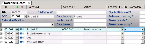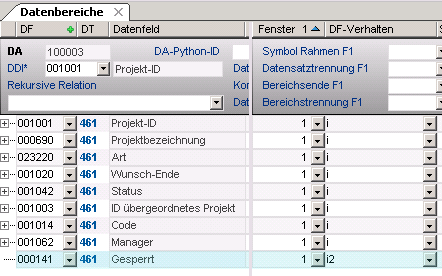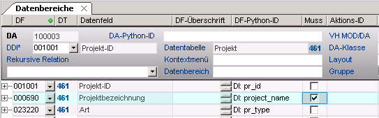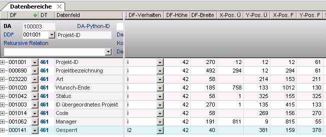 - Es werden alle Dataitems der Datentabelle 461 Projekt angezeigt.