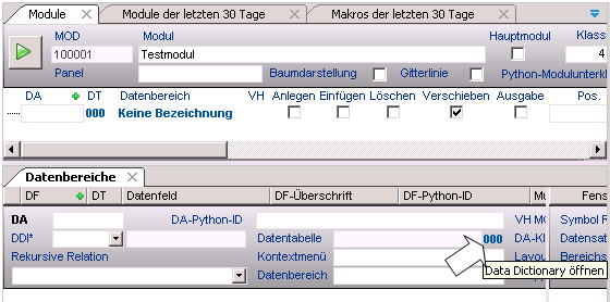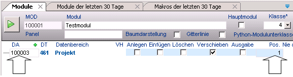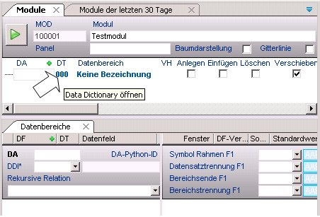 - Im Modul Module Klick auf den Link 000 im Feld DT.