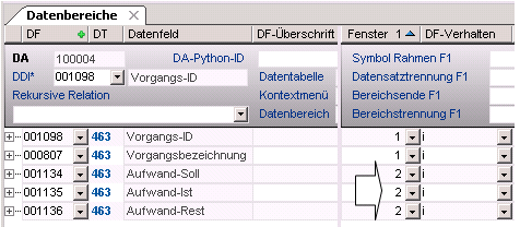 - Nach dem Löschen einer Datenbereichszuordnung sollten die Datenfelder Pos. und Oberbereich entsprechend neu angepasst werden.